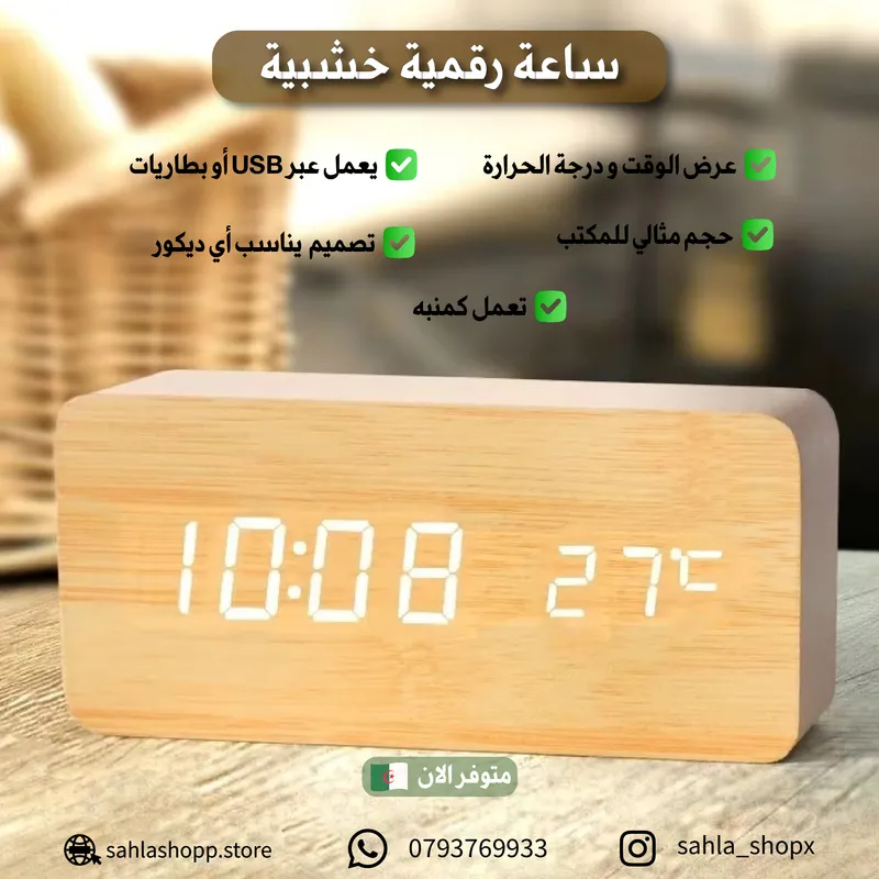 أضف لمسة من الأناقة والهدوء العصري إلى غرفتك أو مكتبك مع هذه الساعة الرقمية الخشبية المصممة بعناية لتجمع بين الجمال الطبيعي والتكنولوجيا الحديثة.